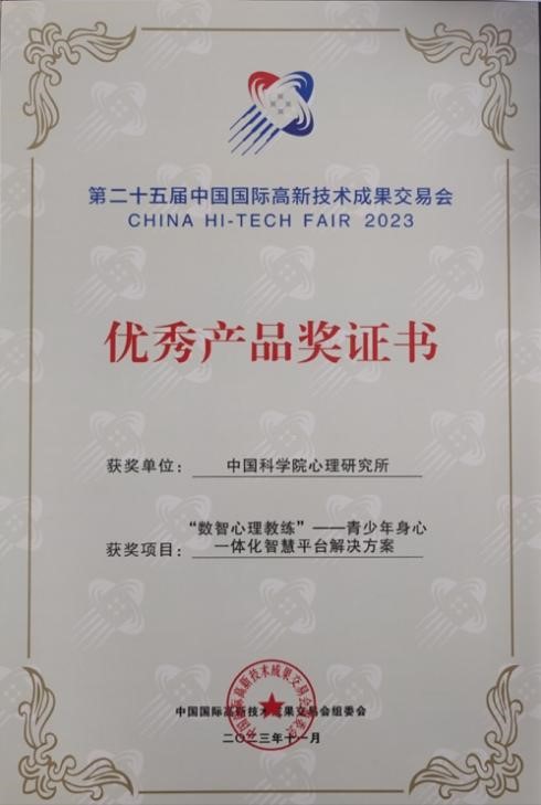 “数智心理教练”青少年智慧平台项目荣获第二十五届国际高新技术成果交易会优秀产品奖