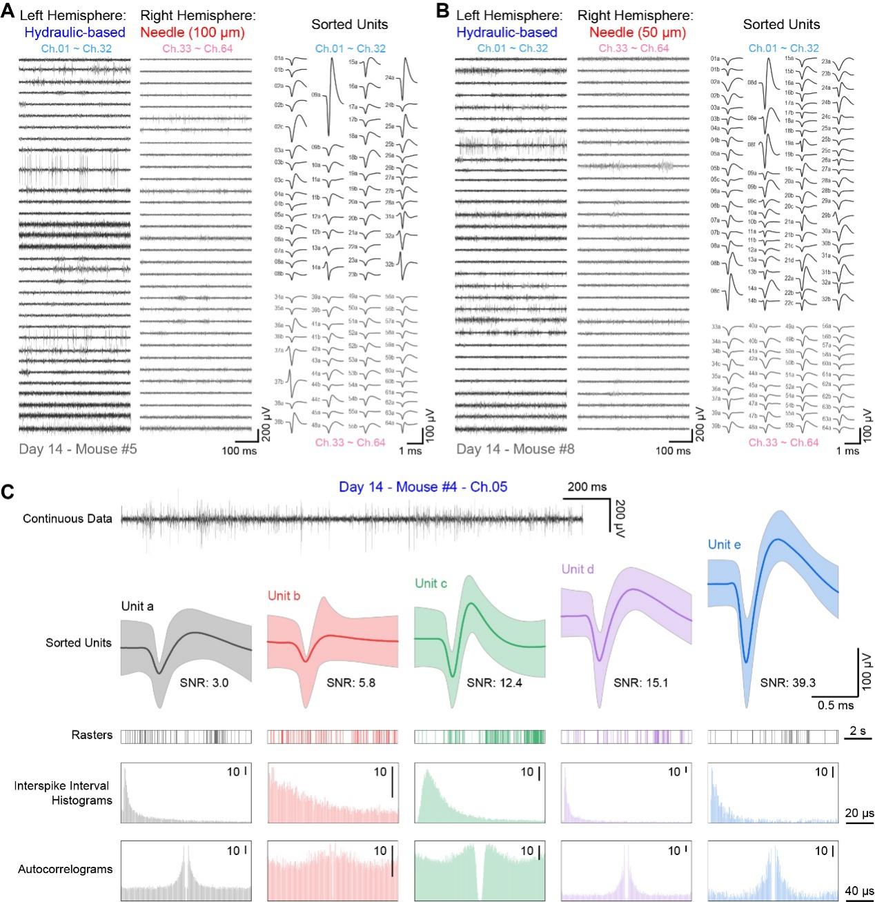 图3. 神经触手探针所记录到的高质量神经活动信号