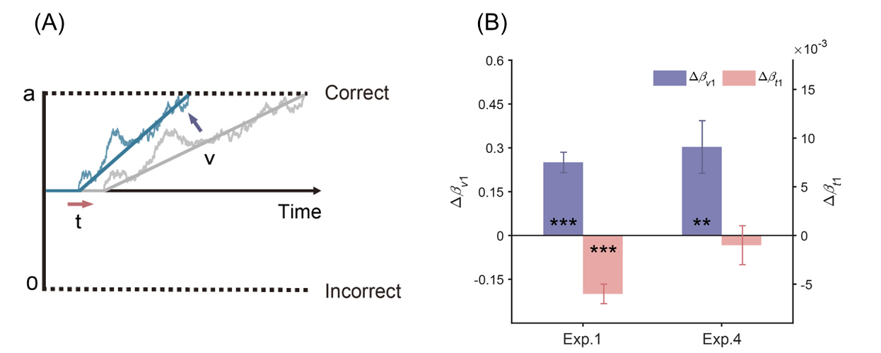 图4. 漂移扩散模型示意图(A)和结果图(B)
