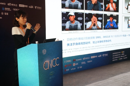 合肥工业大学教授郭丹作了主题为“微动传情:以人为中心的行为理解与情绪解析”的报告,报告分析了以人为中心的微动作理解与情绪分析的特点与挑战,介绍了自发性微动作数据集构建、运动放大技术、多用户交互场景中的视线估计及个体情绪分析等研究,讨论了相关技术的挑战与未来趋势,为行为理解和情绪认知领域提供新思路。