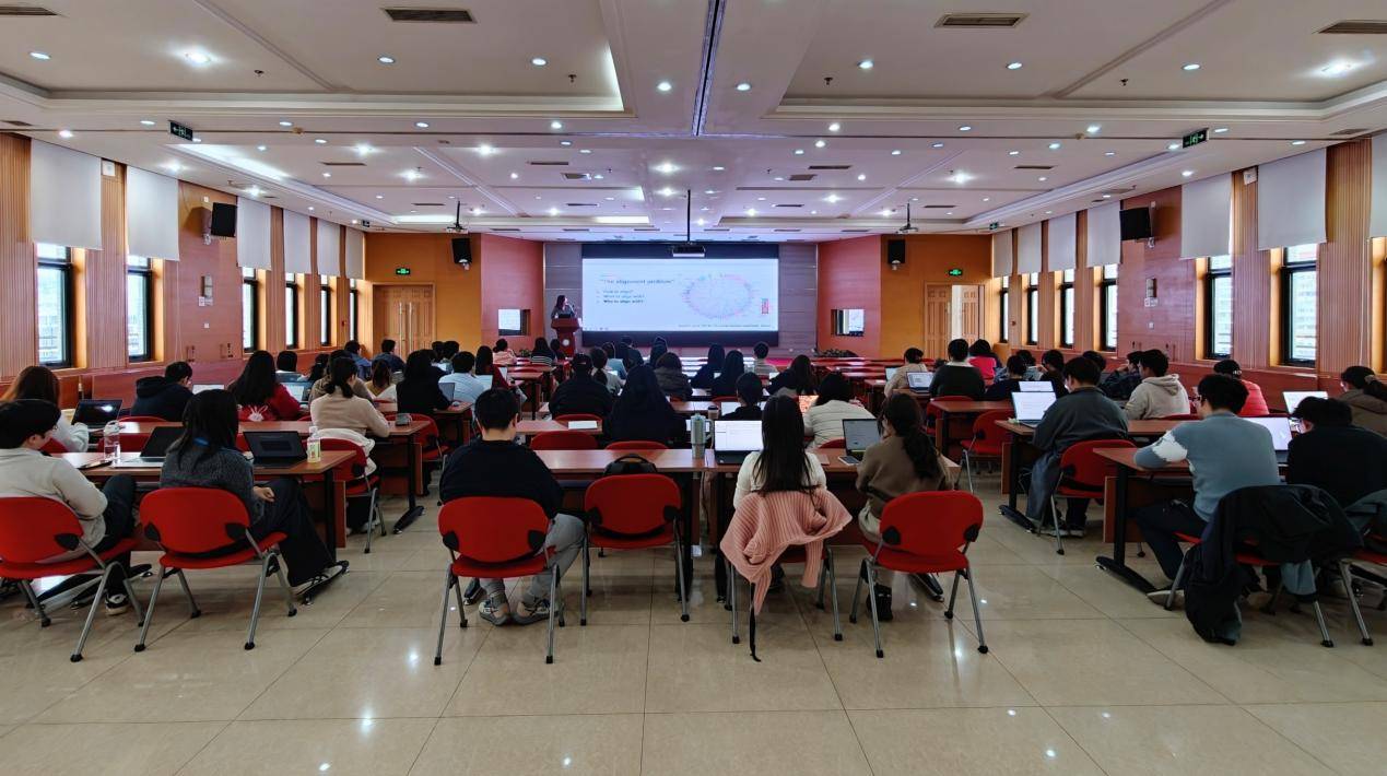 在人工智能安全与伦理领域,一个核心挑战是如何让人工智能与人类的价值和偏好保持一致,但人工智能价值对其中的目标“人类”究竟应该如何界定尚不明确。董梦晨从文化差异、社会群体和权力关系三个层面系统分享了该议题背后的多层次心理结构的实证研究探索,研究揭示了一系列发现:公众对自主人工智能承担人类职业角色的恐惧在不同文化中既存在差异,也呈现共通的心理机制;不同社会群体对于社会服务自动化的偏好存在系统性差异;在权力不对等的人工智能管理情境中,人们对不公平待遇往往表现出一定的钝感性偏差。这些研究结果彰显了心理学在应对现实世界人工智能发展与治理挑战方面所能发挥的独特作用。与会师生就报告内容与董梦晨进行了深入而热烈的交流讨论。
